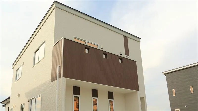 外壁をツートンカラーにする際は、落ち着いた同系色を用いて比率に差をつけたデザインにするとおしゃれな印象になりやすいです。